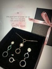 Pulsera, anillo y collar a juego en dorado o plateado disponible en la web.